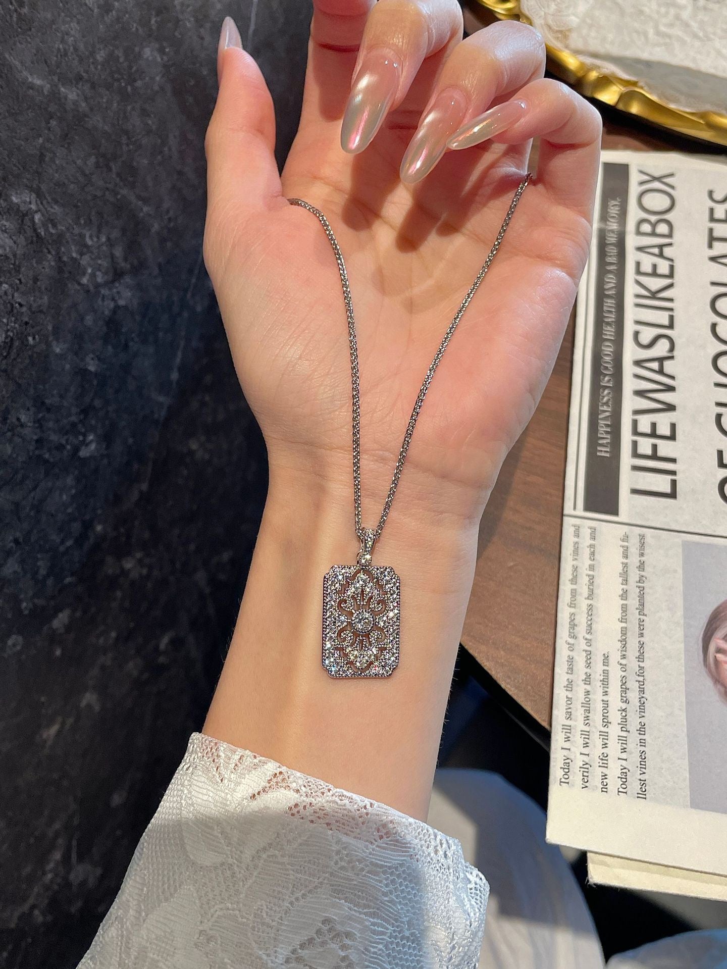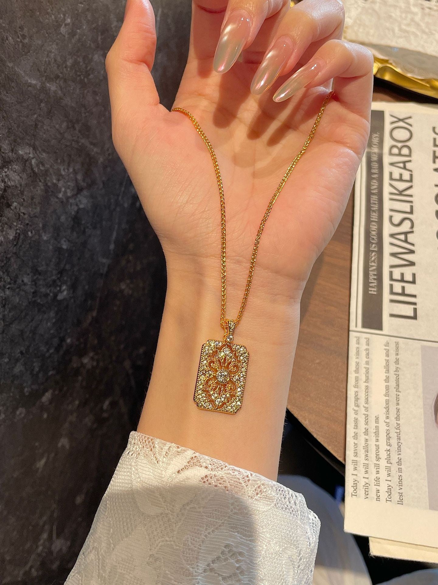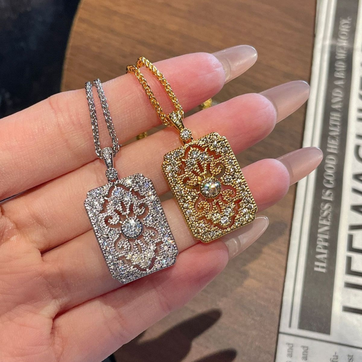 These necklaces boast a luxurious, vintage - inspired style. Crafted with high - quality alloys, they are lavishly inlaid with sparkling cubic zirconias. The intricate openwork design on the rectangular pendants adds an elegant touch. Ideal for elevating your daily look or making a statement at special events. A perfect blend of classic charm and trendy bling, they are must - haves for jewelry lovers seeking both style and substance