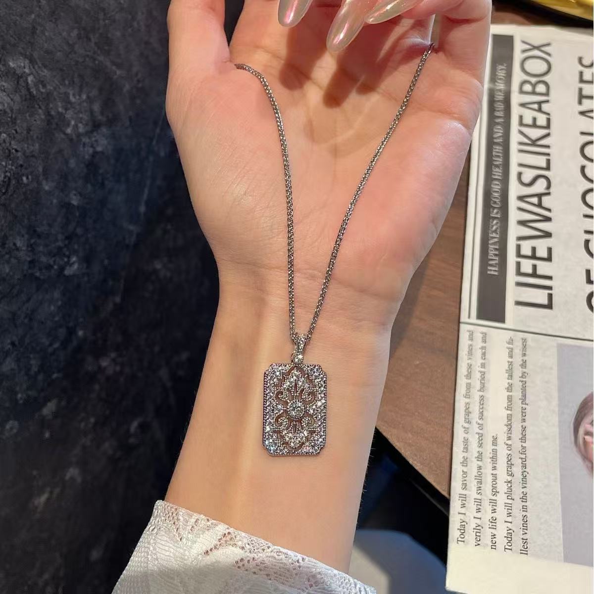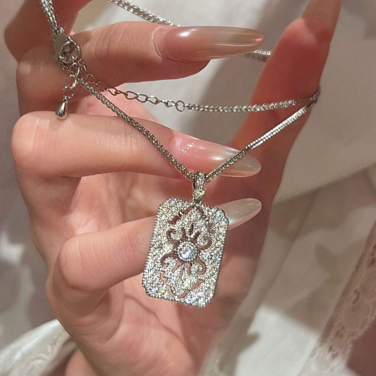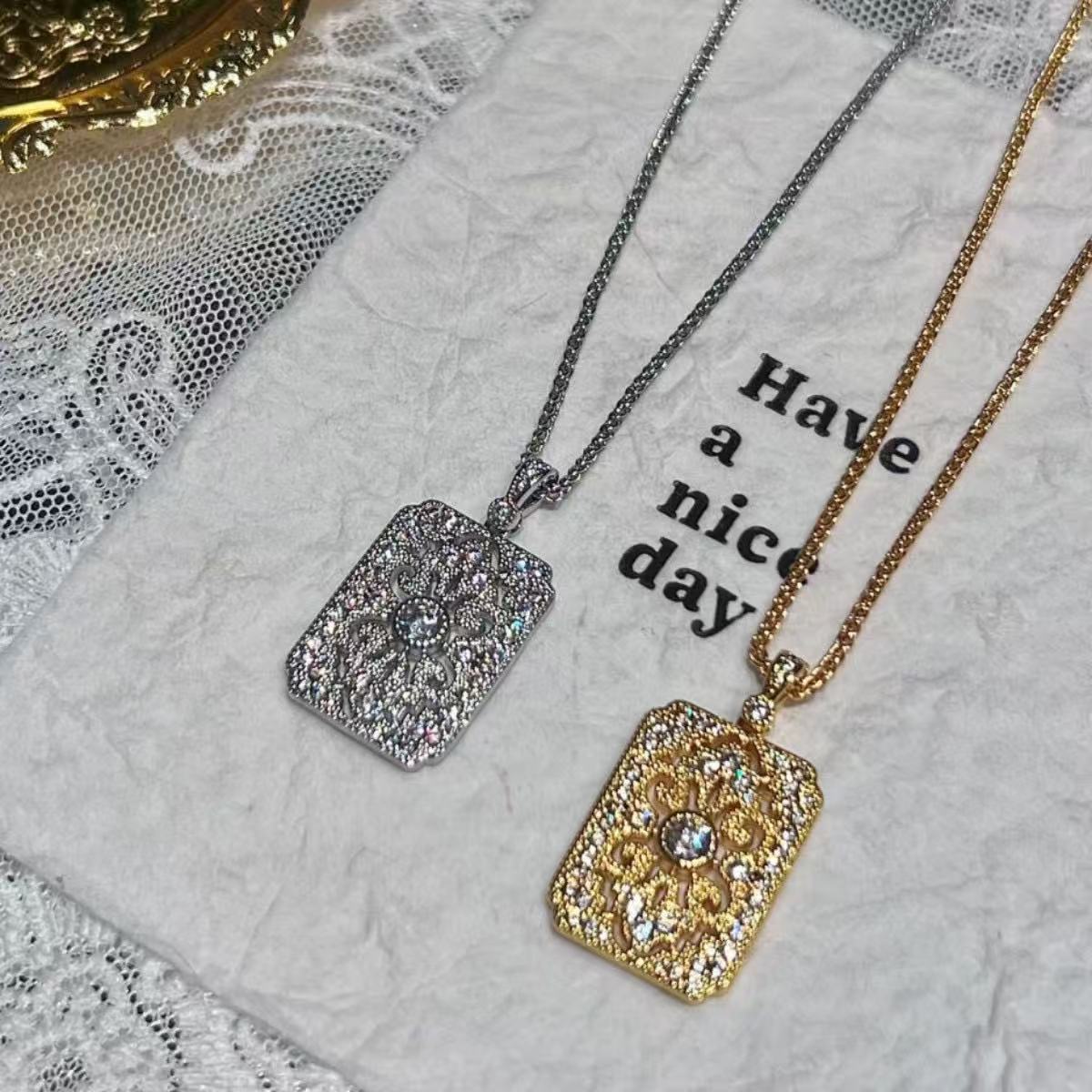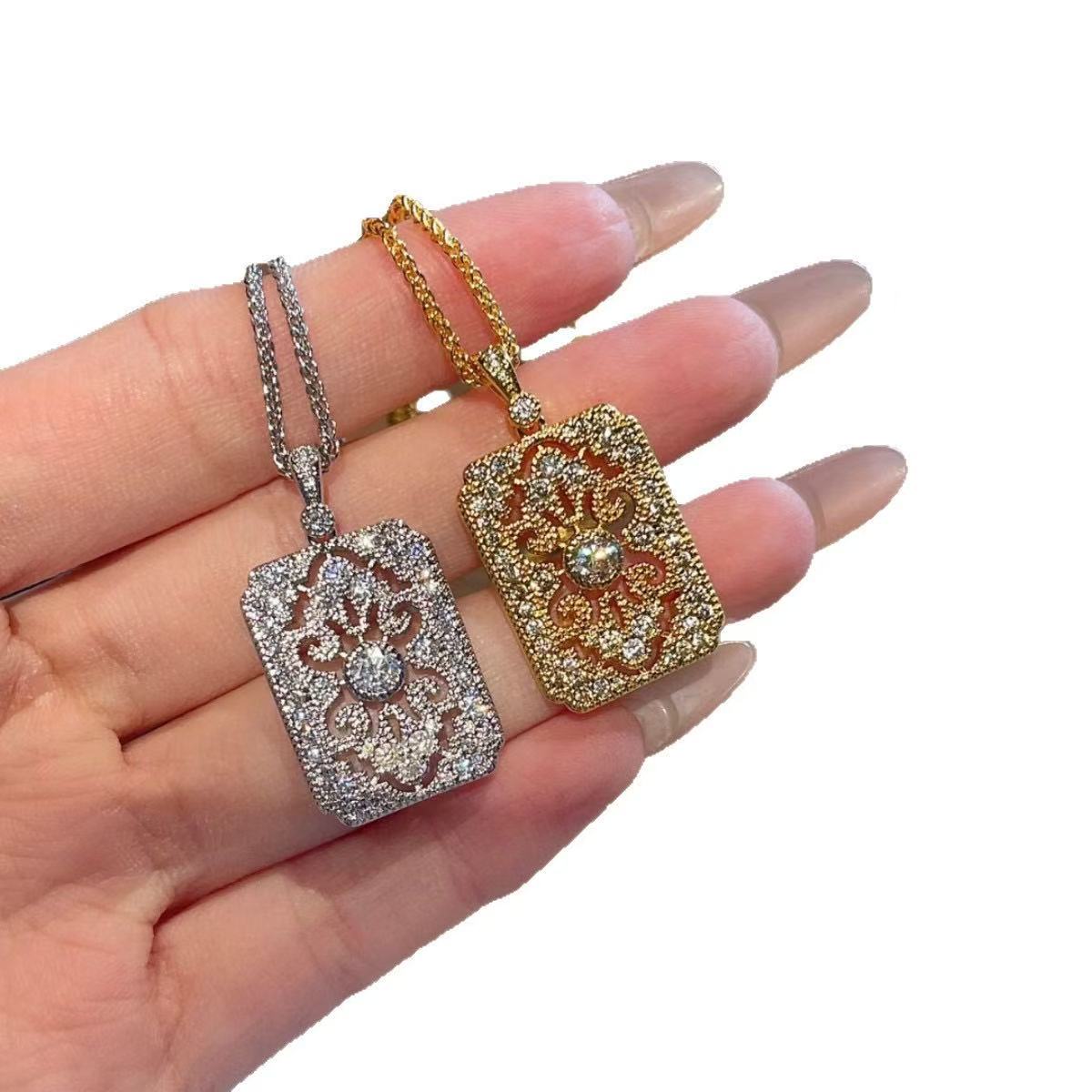 These necklaces boast a luxurious, vintage - inspired style. Crafted with high - quality alloys, they are lavishly inlaid with sparkling cubic zirconias. The intricate openwork design on the rectangular pendants adds an elegant touch. Ideal for elevating your daily look or making a statement at special events. A perfect blend of classic charm and trendy bling, they are must - haves for jewelry lovers seeking both style and substance